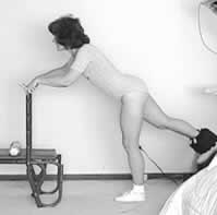 I illustrated the exercises by taking pictures of myself. I had to set the camera on automatic, rush over, assume the position, wait for the camera to take the picture and start over for each shot. This makes it difficult to have perfect form. I'll add comments where appropriate. Lucia